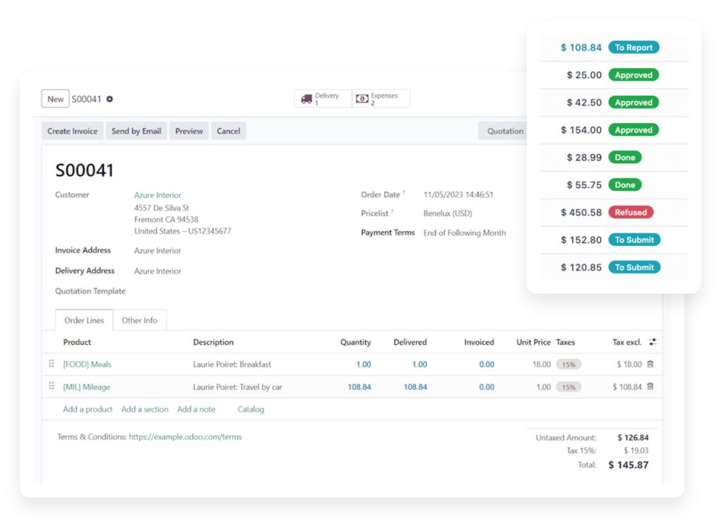La aplicación Gastos de Odoo mantiene todo organizado para que te olvides de guardar recibos innecesarios.